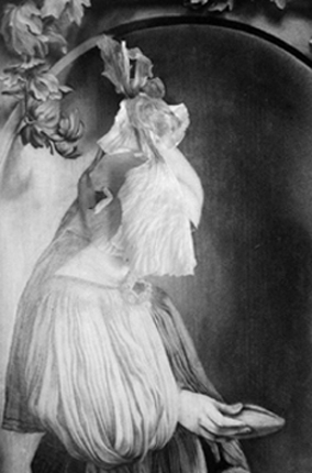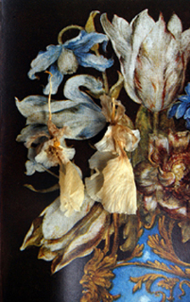 Faded flowers that I regard as non-transitory entities become part of the historic painting: a metamorphosis. The altered illustrations of the paintings of these old masters appear in a new context in the Anhaltische Gemäldegalerie Dessau. In the small room behind the hall with the portraits of the noble families, one finds a niche with family mementos and portrait reliefs. The four photographic “portraits” are presented on the empty wall of this room, opposite a wall mirror, and so become part of the tradition of the ancestral portrait gallery.