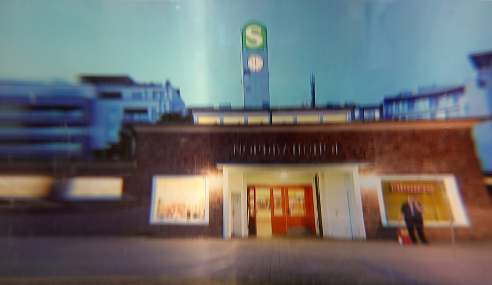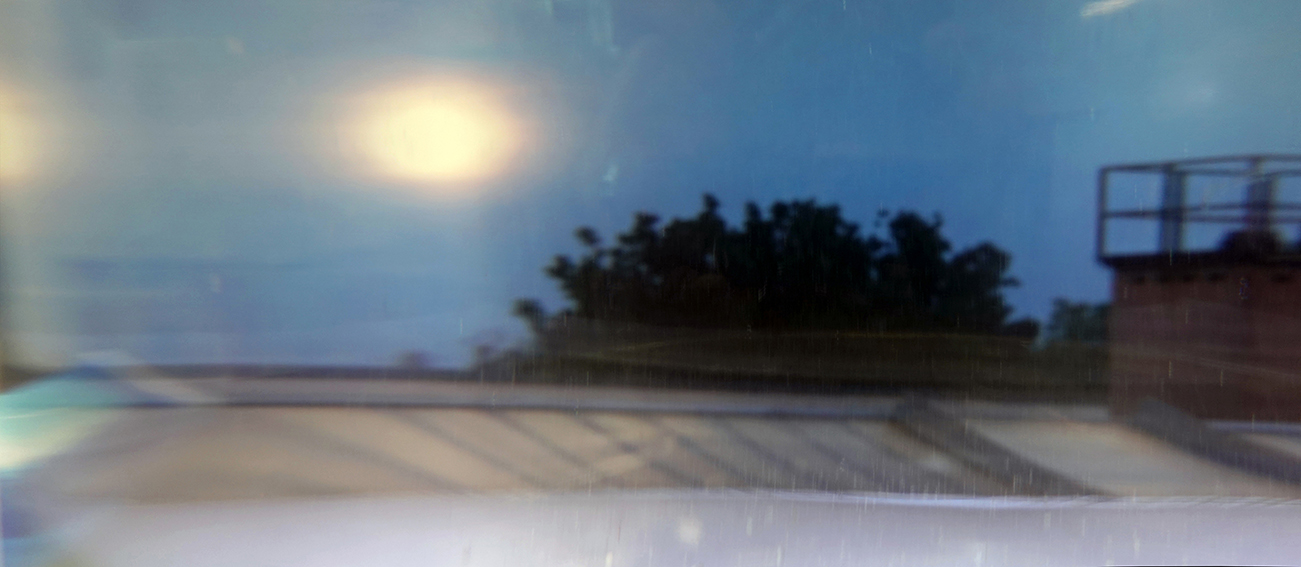 The photographs in the artist's archive are once again taken in an analog distorted state in order to prolong the moment they contain: between the camera and the photographs is a cylindrical glass filled with water. Their views are therefore extended in width.