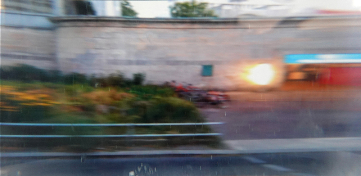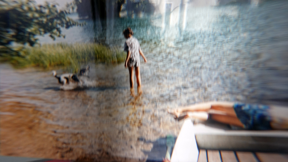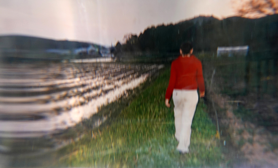 Die Fotografien im Besitz der Künstlerin werden noch einmal in einem analog verzerrten Zustand aufgenommen, um den darin enthaltene Augenblick zu verlängern: Zwischen der Kamera und den Fotografien steht ein mit Wasser gefüllten Zylinderglas. Ihre Ansichten werden daher in die Breite ausgedehnt.